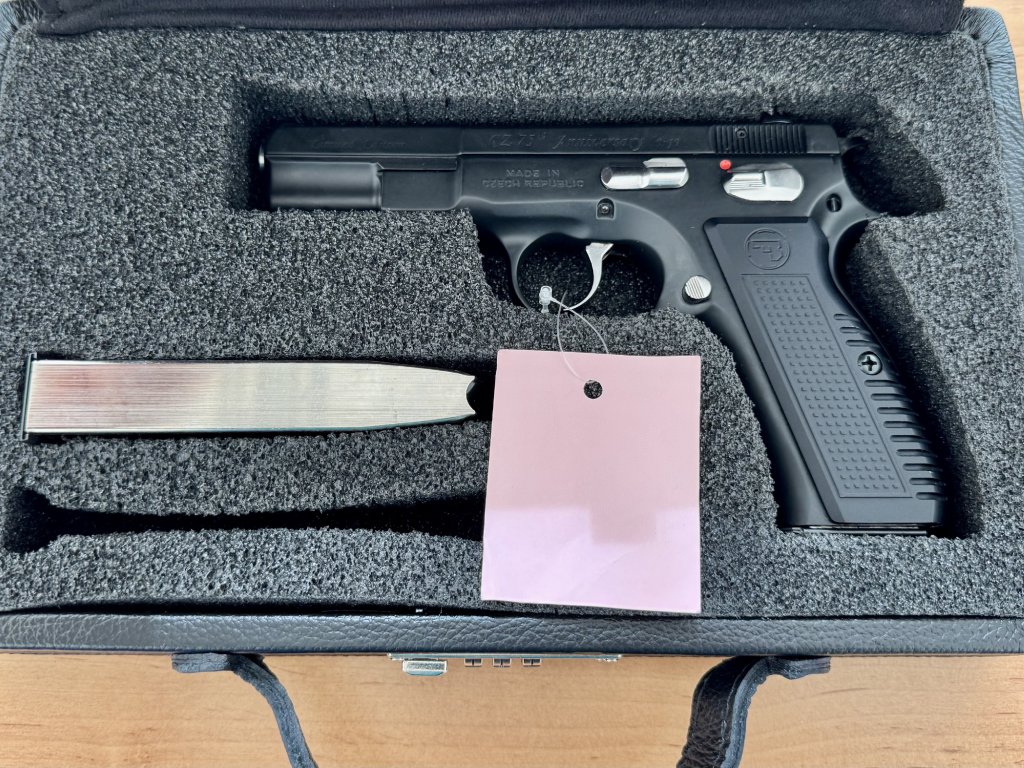 Délka hlavně 11,4 cm (4,5"), celková délka 20,3 cm (8"), hmotnost 1,06 kg, rok výroby 2011, česká zkušebna. V originálním koženém kufříku s číselným zámkem, rezervním zásobníkem, nástřelným listem, certifikátem, původním záručním listem a čisticí sadou. Speciální model k 75. výročí firmy Česká zbrojovka, limitovaná edice: 43. kus ze 75 (určených pro Evropu). Limitovaná série k firemnímu jubileu tehdy v různých edicích pro jednotlivé kontinenty. Tento kus pochází z evropské série. Možno objednat přepravu v rámci ČR.