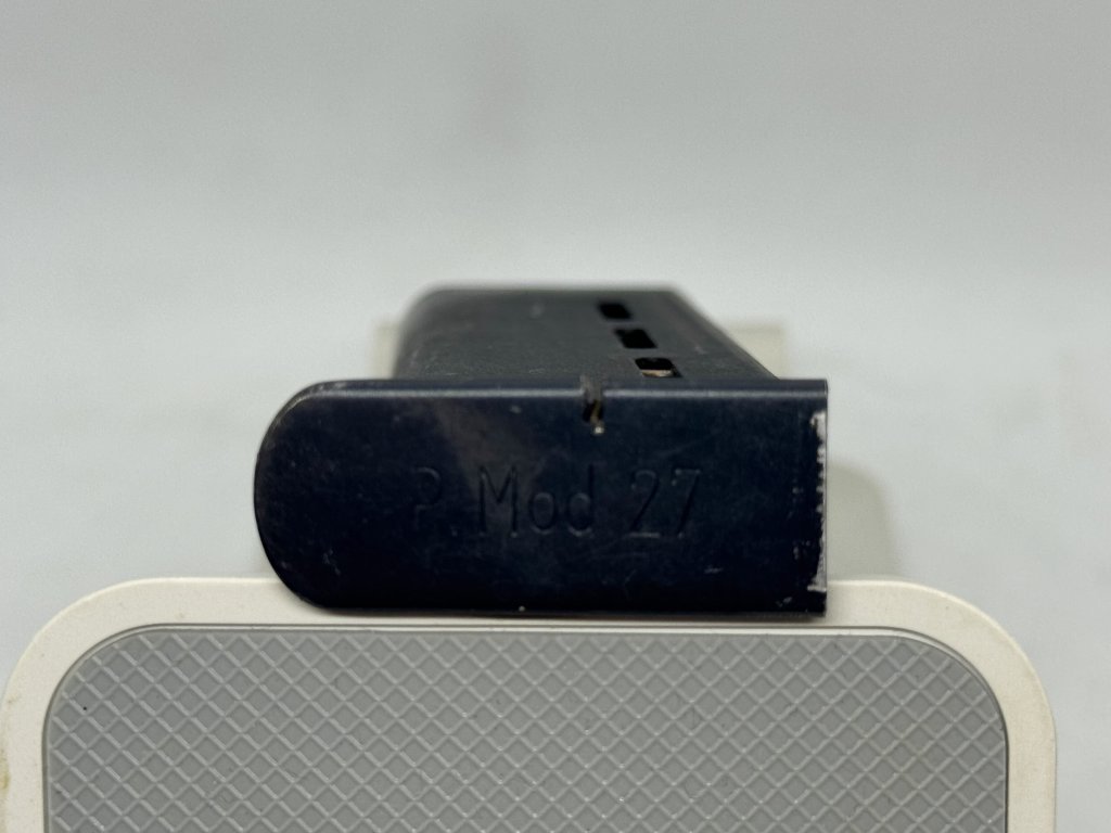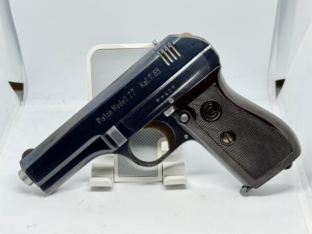 Jeden ze vzácnějších modelů samonabíjecí pistole CZ vz.27 (P MOD.27 (t)), ráž 7,65mm Browning. Jedná se o nižší výrobní číslo které ji řadí do roku 1940, kdy se těchto zbraní vyrobilo (dle dochovaných informací) nejméně. Zbraň je značena WAA76 a jedná se o komplet se značeným zásobníkem.