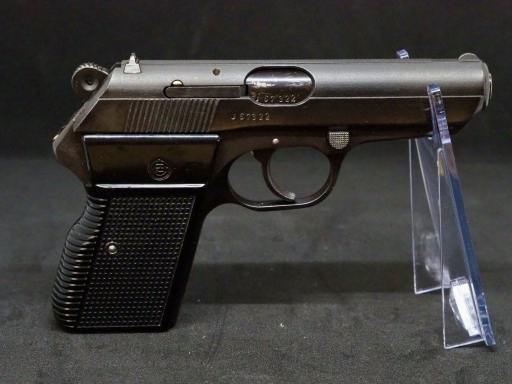 Samonabíjecí pistole CZ vz.70 ráž 7,65mm Browning je v podstatě upravená a modernizovaná pistole CZ vz.50 (1950-1969). V obou případech se jednalo o převážně služební zbraně užívané příslušníky SNB a dalších ozbrojených složek. Jedná se o jednu z nejrozšířenějších služebních pistolí, která byla příslušníky policie ČR používána ještě v polovině 90.tých let. Jako služební ji následně nahradila pistole CZ vz.82. Velké množství pistolí CZ vz.70 bylo vyrobeno i pro export - tento konkrétní kus z roku 1971 byl zpětně dovezen z Německa. Nachází se ve výborném stavu - mírně známky používání. Příslušenstvím je jeden originální zásobník.
