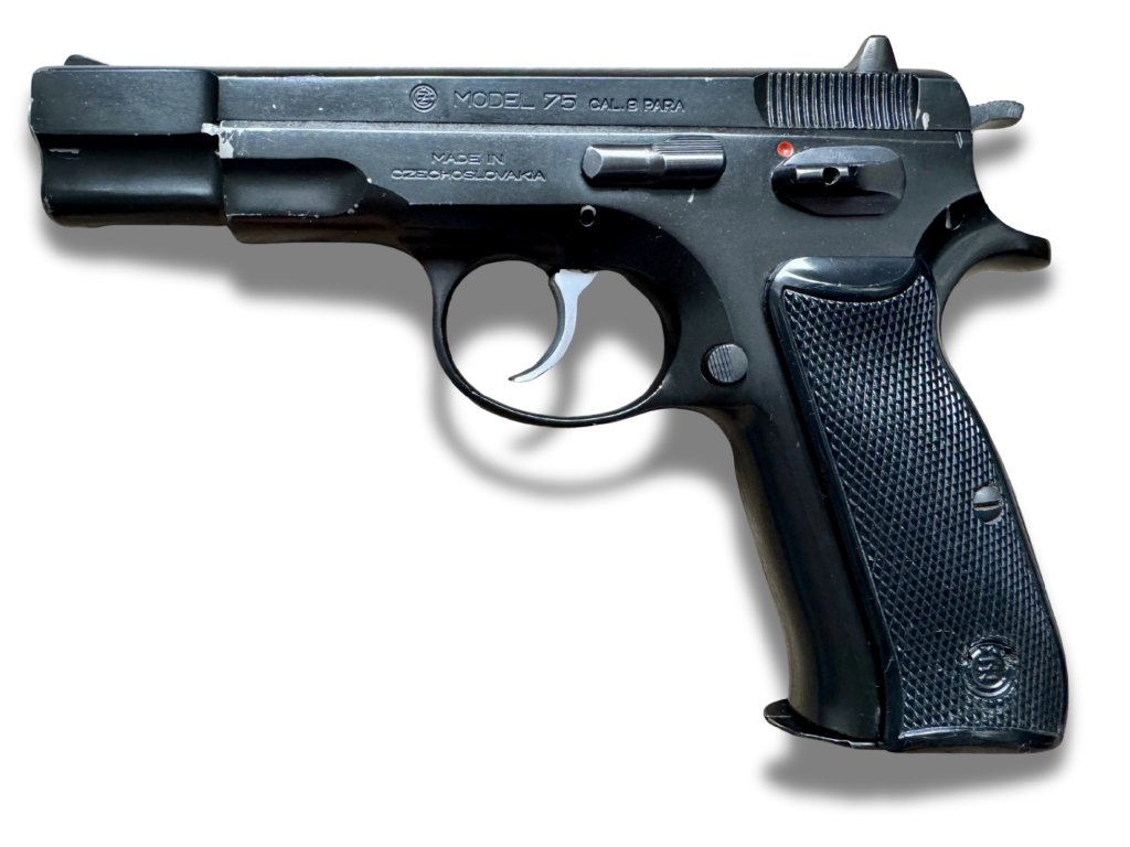 Samonabíjecí pistole CZ vz.75 (1986), 9mm Luger. Hlaveň zrcadlová. Technický stav velmi dobrý - mírně horší povrch (místy poškozený lak) - viz foto. Příslušenství - jeden zásobník. Možno objednat přepravu v rámci ČR.