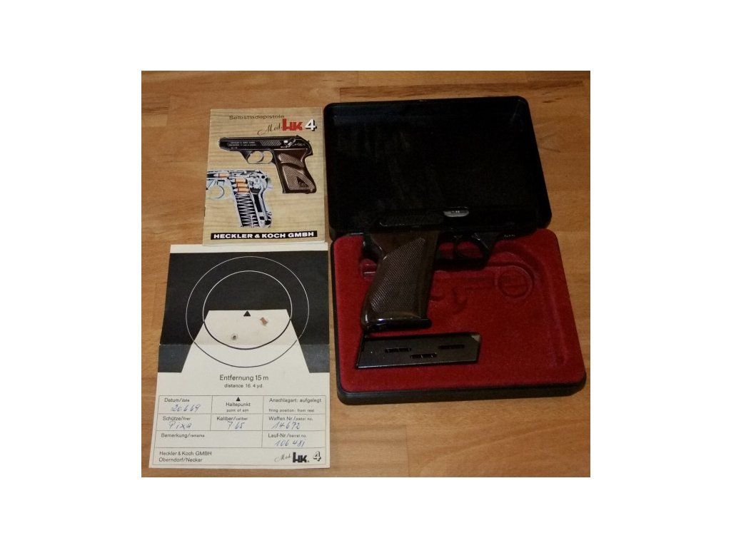 Samonabíjecí pistole Heckler & Koch HK4, 7,65mm Browning. Velmi dobrý stav - kompletní balení s jednou hlavní.